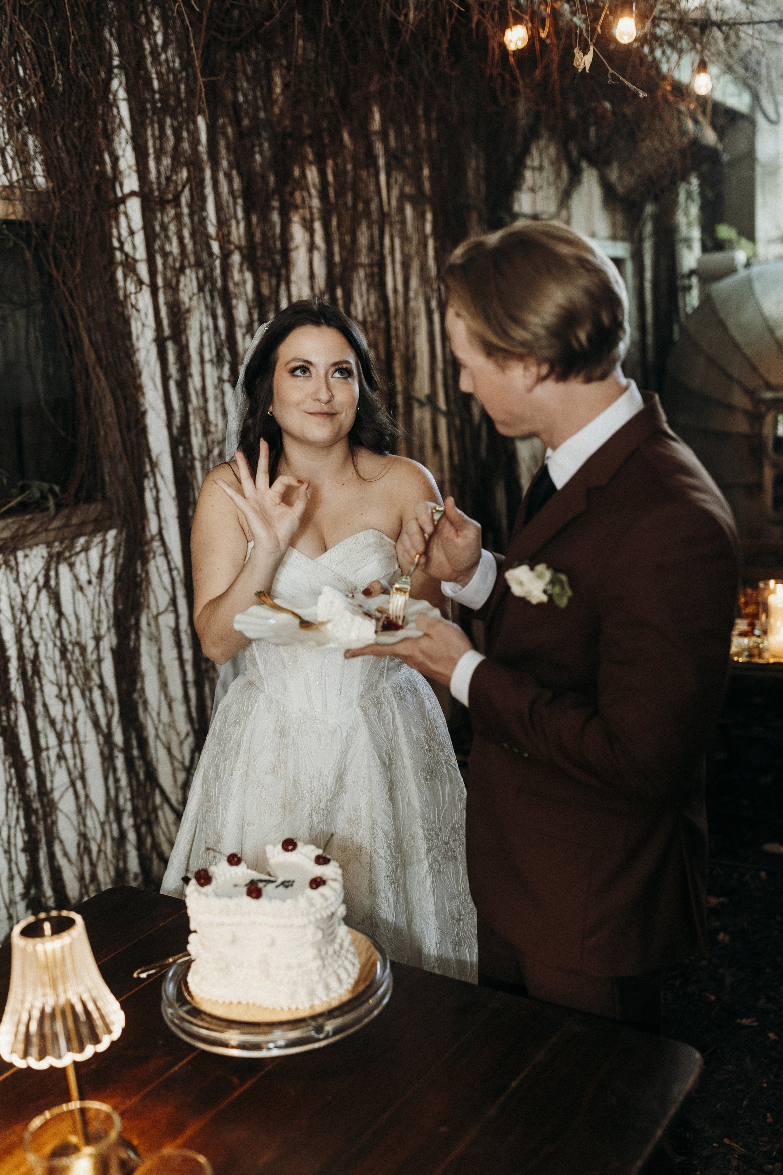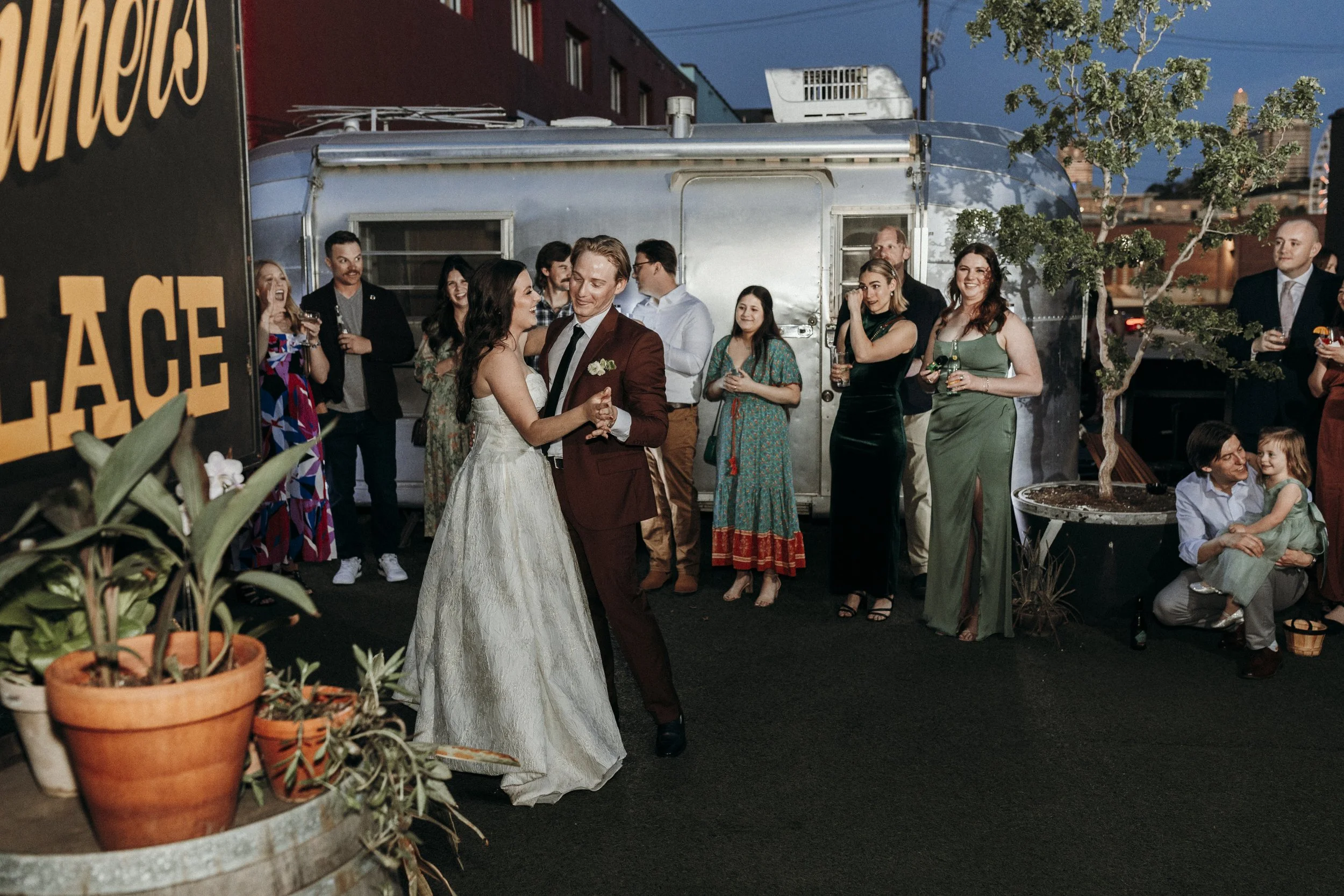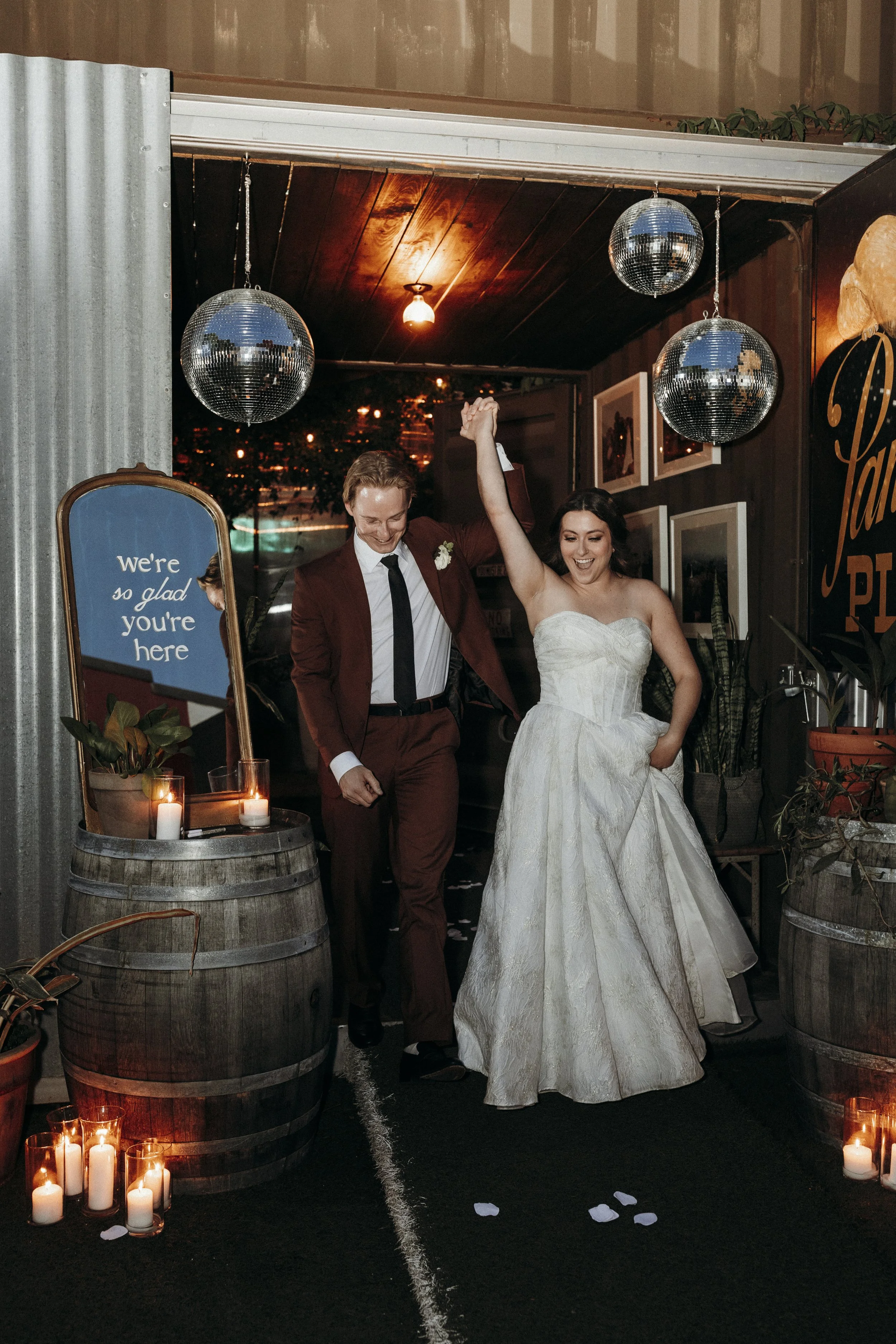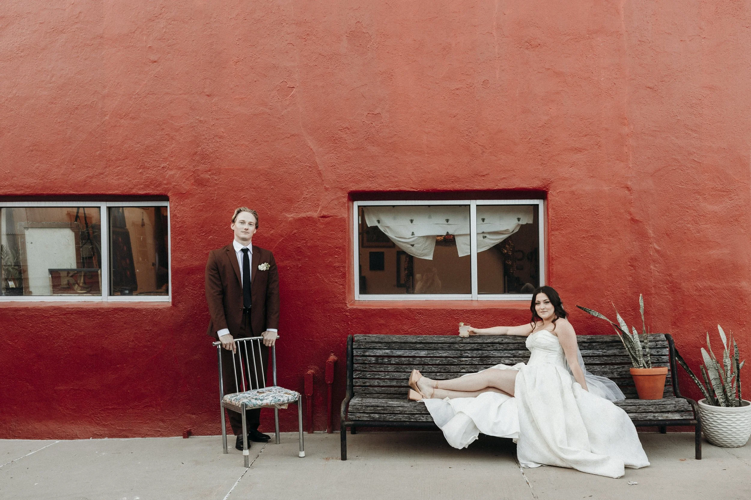 A mere three days later, on a (mockingly) sunny and warm day in Kansas City, we celebrated once again at Beth & Alec's reception. Their reception was as unique as their elopement, designed in a greenhouse space like I'd never seen. They rented out Panther's Place, an open air bar and greenhouse, and hosted a small dinner for family in a long covered alleyway draped in vines. After dinner, they invited friends to come out and celebrate as well with drinks, dancing, and dessert.